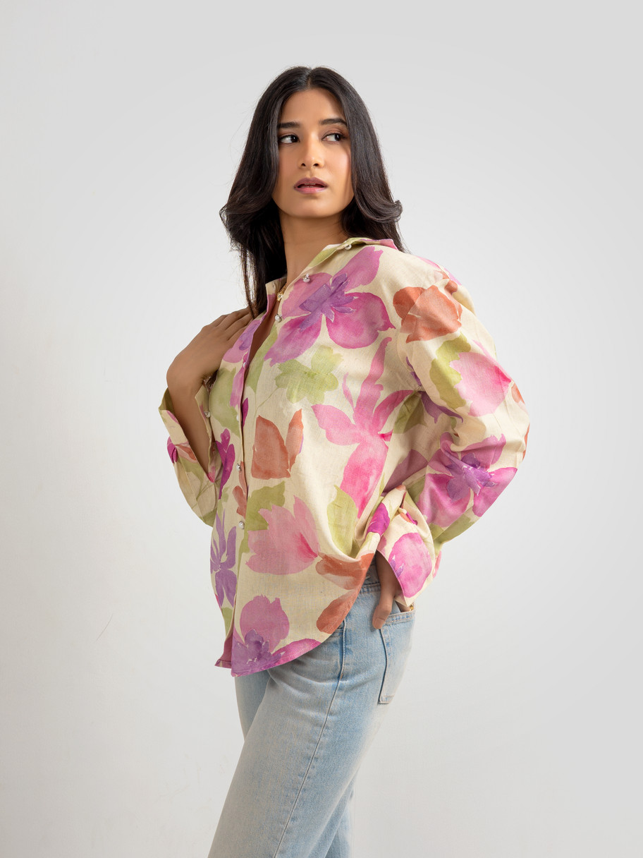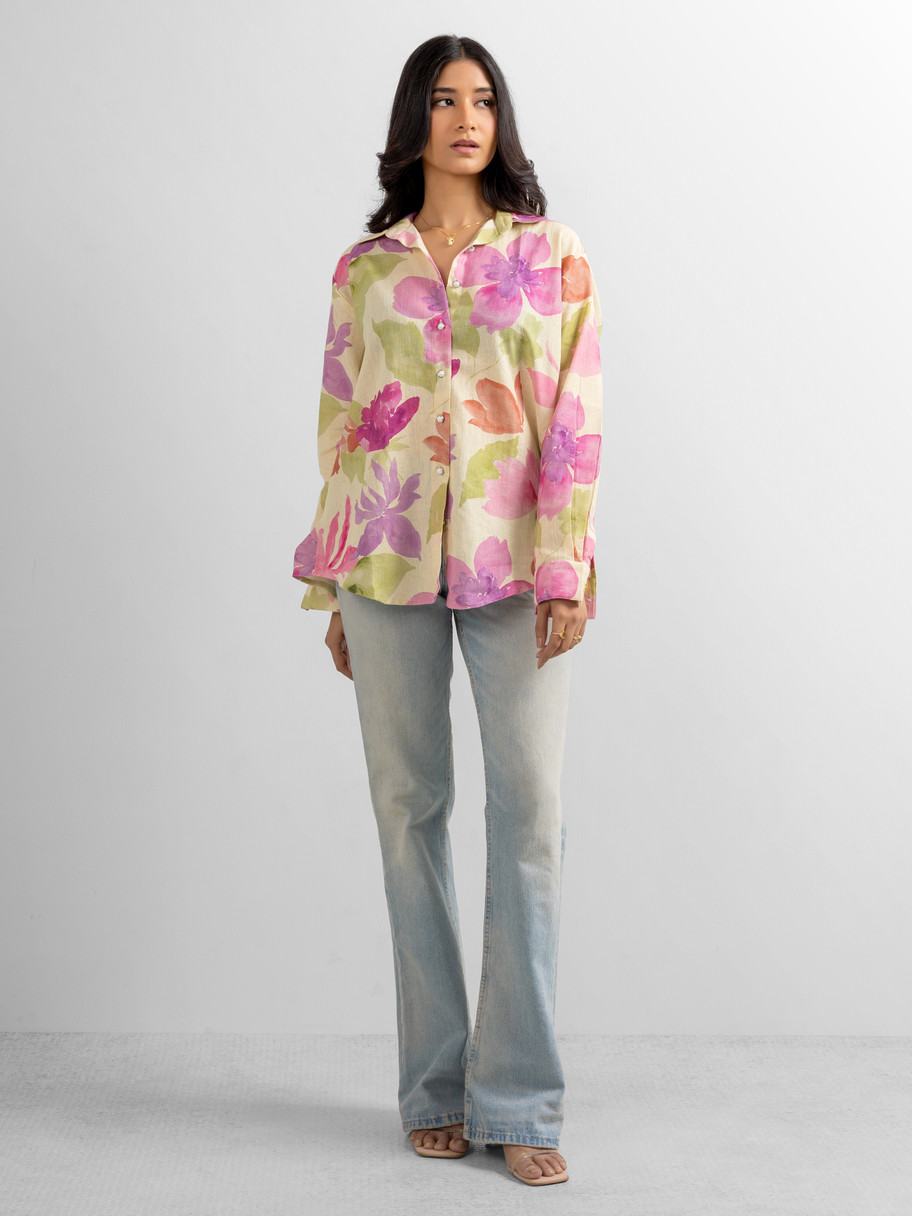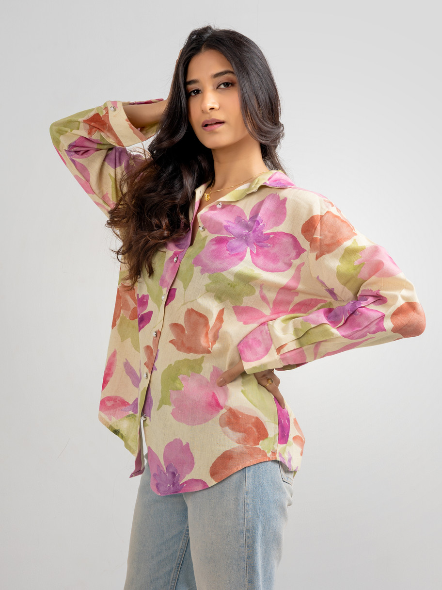 Women's Watercolor Floral Button-Down Shirt